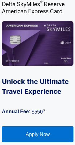 Delta Airlines frequent flyers will want the Delta SkyMiles Reserve American Express Card. The $550 annual fee gets you access into both Delta Sky Club and American Express’ The Centurion Lounge! And each year, you get two Delta Sky Club One-Time Guest Passes to share the experience with friends and family. This card also features: